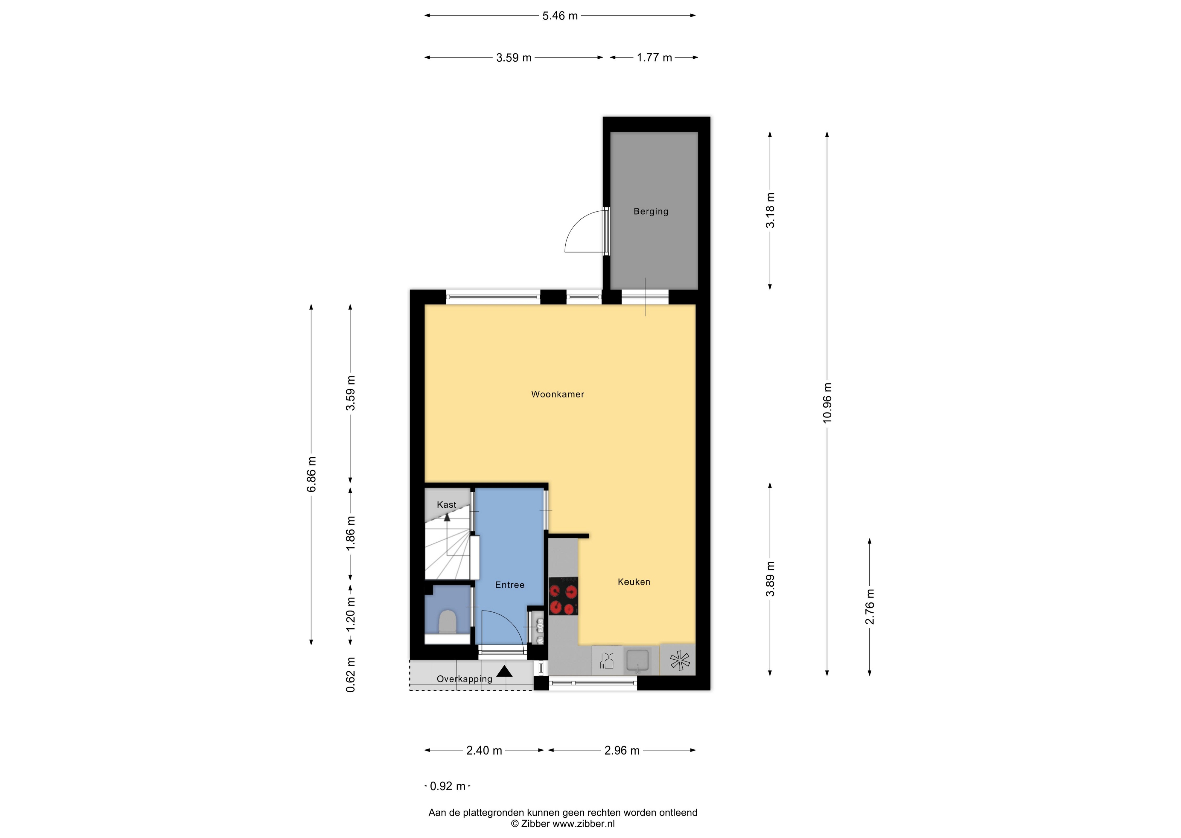 Je betreedt de woning via de entree/hal met trapopgang en een separate toiletruimte. Aan de voorzijde van de woning bevindt zich de open keuken. De ruime woonkamer biedt toegang tot de aangebouwde berging. Vanuit de berging bereik je de achtertuin, die is voorzien van een praktische achterom.