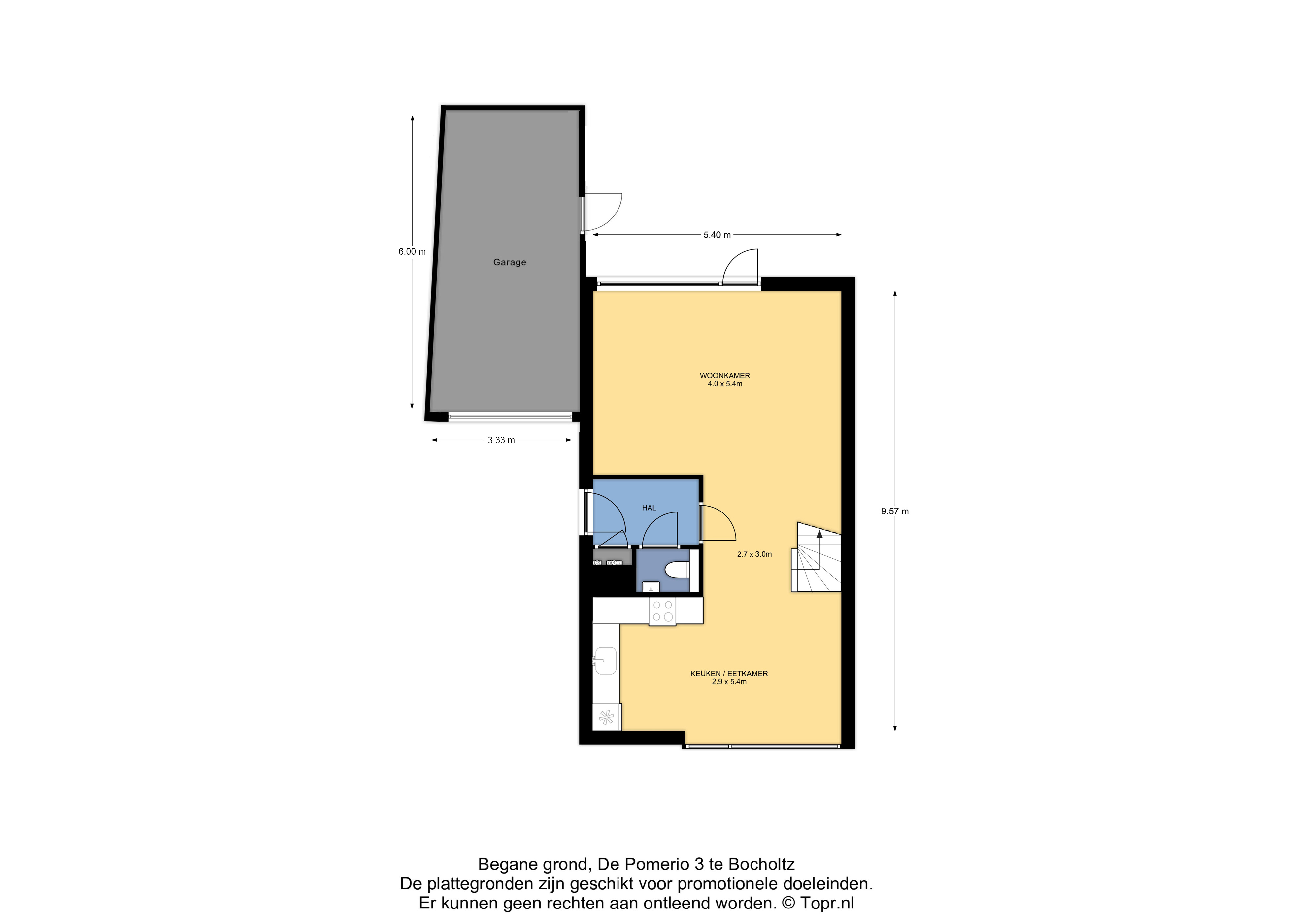 Via de ruime oprit, met parkeermogelijkheid voor twee auto's, bereik je de entree/hal met meterkast en toiletruimte. De royale L-vormige woonkamer, met verdiepingstrap, heeft een optimale lichtinval en een fraai contact met de bijzonder ruime tuin op het zuiden.